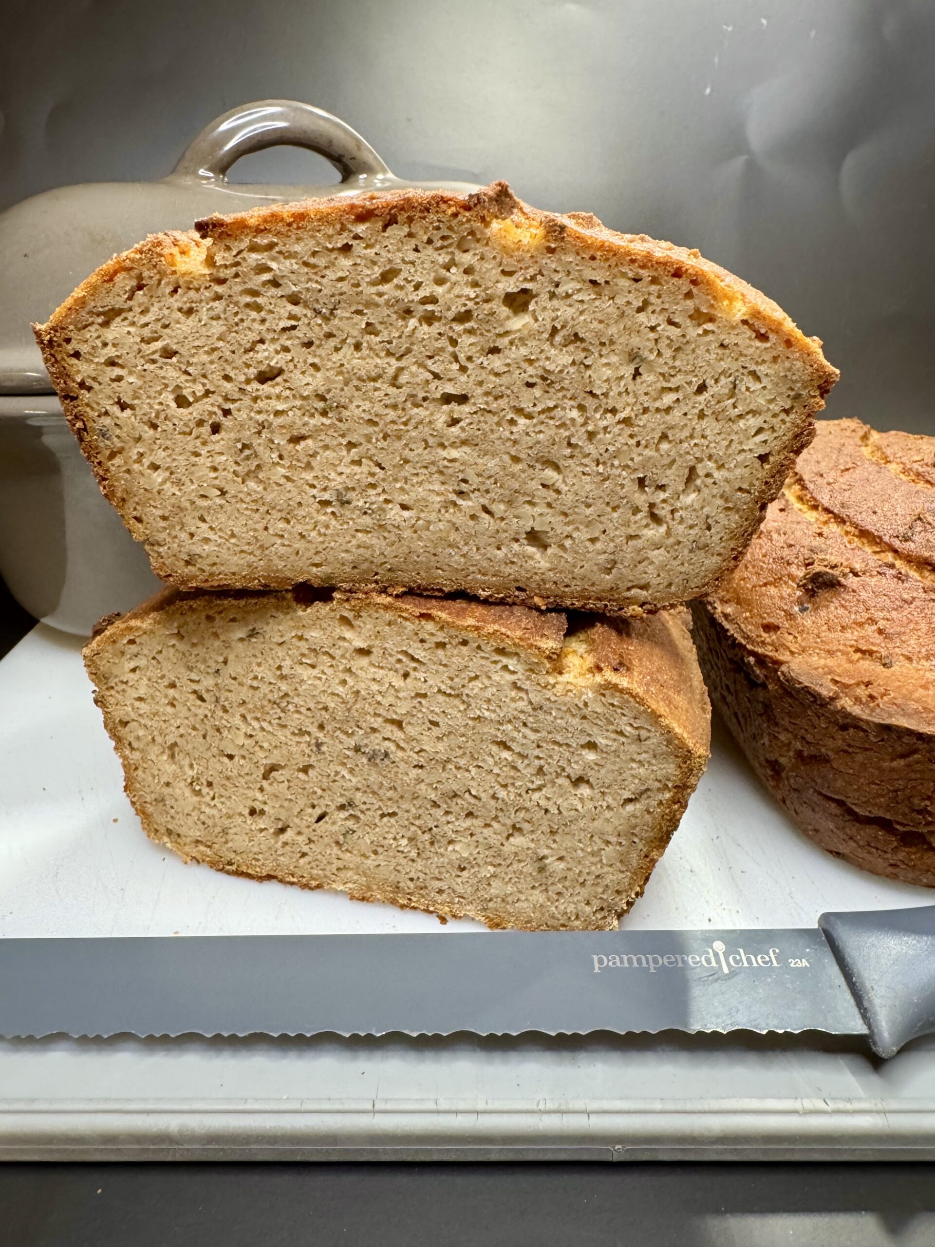 Zum Brot backen verwende ich ja ausschließlich die Stoneware von Pampered Chef. Da bleibt nix kleben und auch meine glutenfreien Brote kommen heil raus ohne das ich Backpapier oder sonst was nehmen muss. 👍🏻