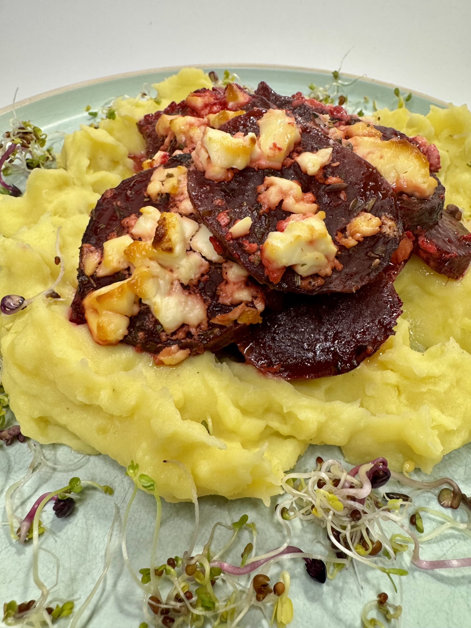 Okay, mit einer klassischen Lasagne hat es natürlich nichts zu tun aber wir nennen es liebevoll so da die rote Bete in die quadratische Ofenhexe geschichtet wird.
