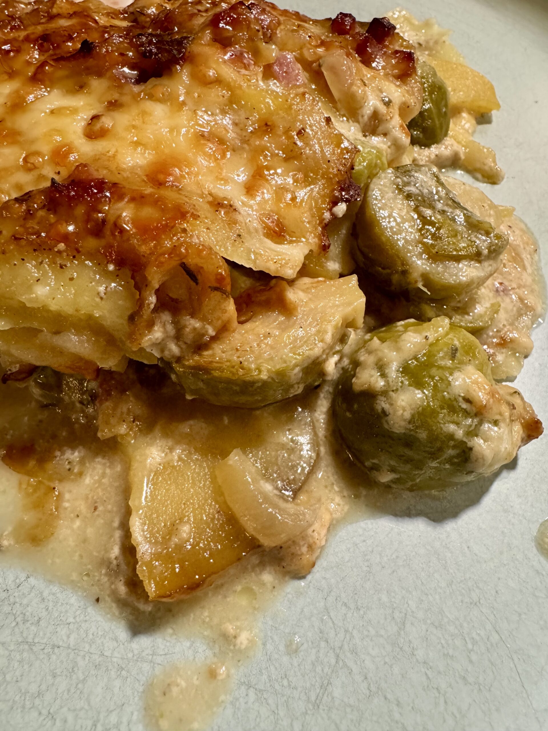 Egal, Rosenkohl. Ein so tolles und leckeres Wintergemüse und da ich heute meine letzte Spätschicht für dieses Jahr hatte, natürlich als Auflauf. 😉