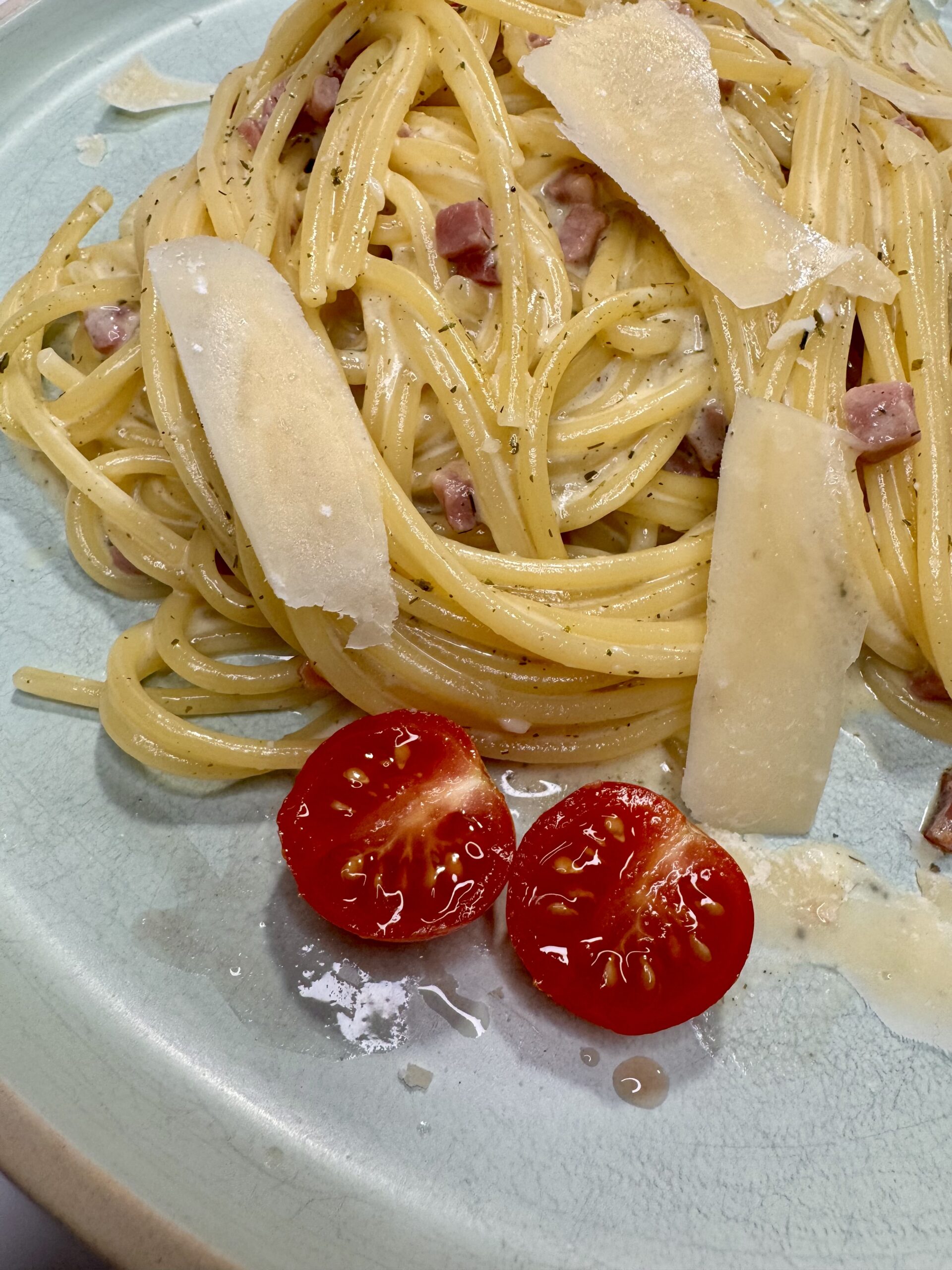 Für mich ist ja Pasta immer mit Hochgenuss verbunden. Ich bin ein absoluter Pasta Fan und ja das ist keine Orginal Carbonara aber unglaublich lecker auch mit Sahne. 😉