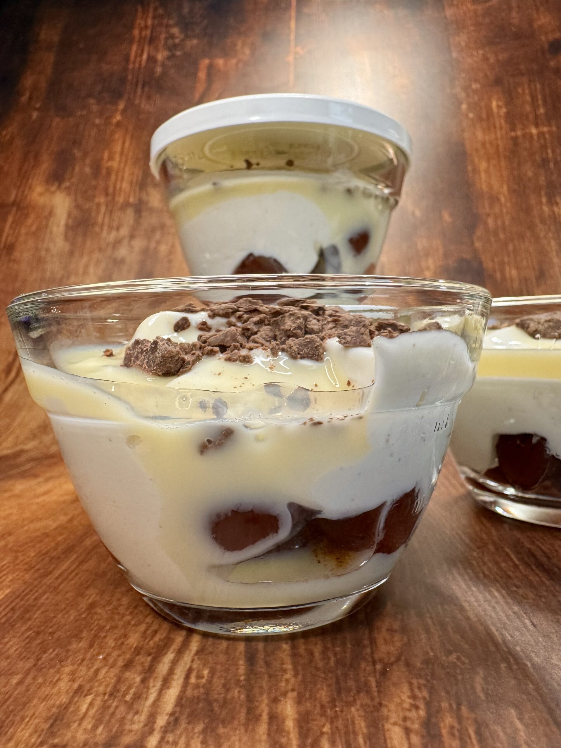 ➡️ in jedes Glas einen Schluck Eierlikör geben und mit ein paar Schokostückchen toppen