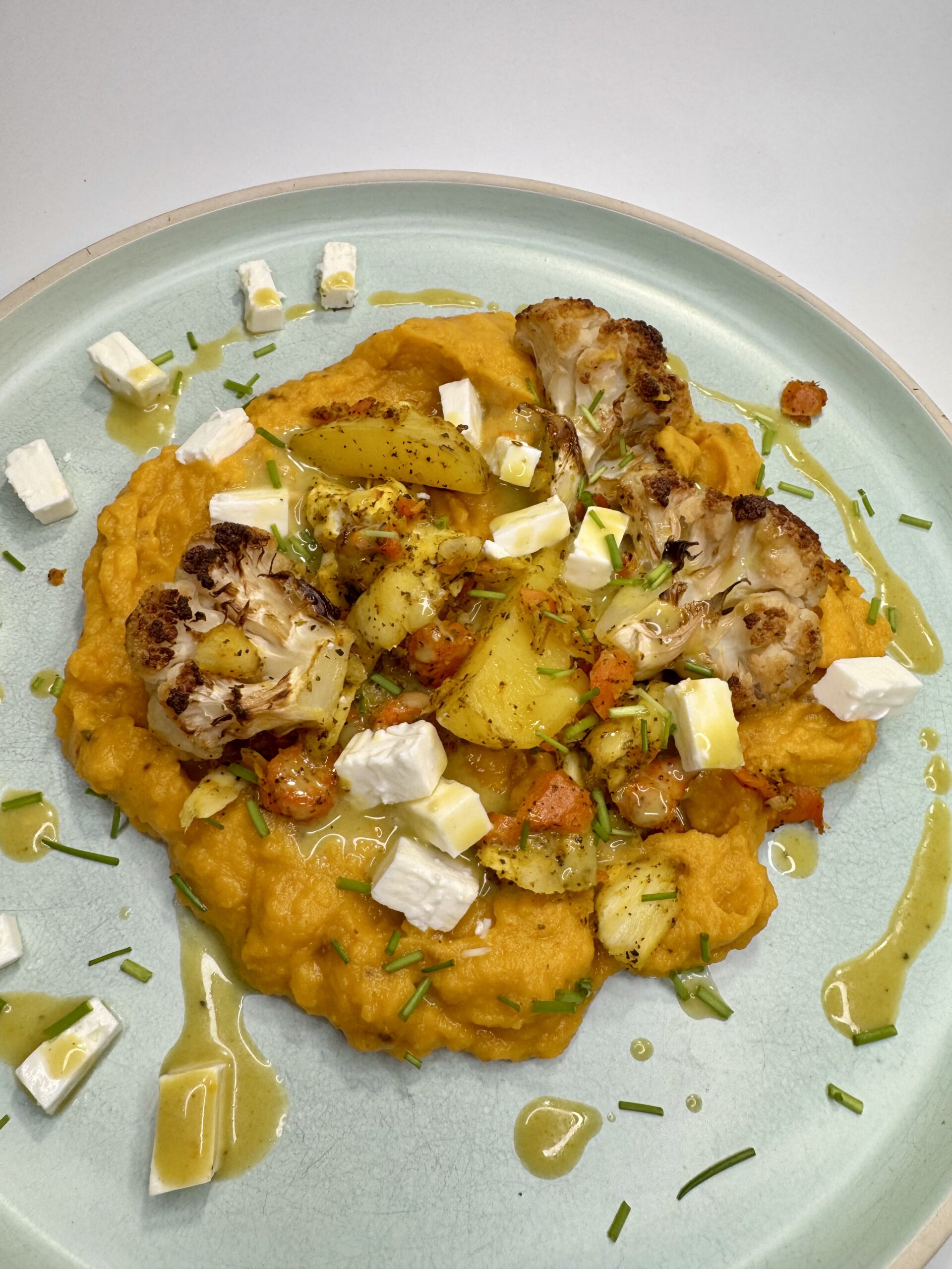 Dazu gab es Ofengemüse. Das bestand aus Möhren, Pastinake, Blumenkohl, Kartoffeln und Gewürzen. 😍