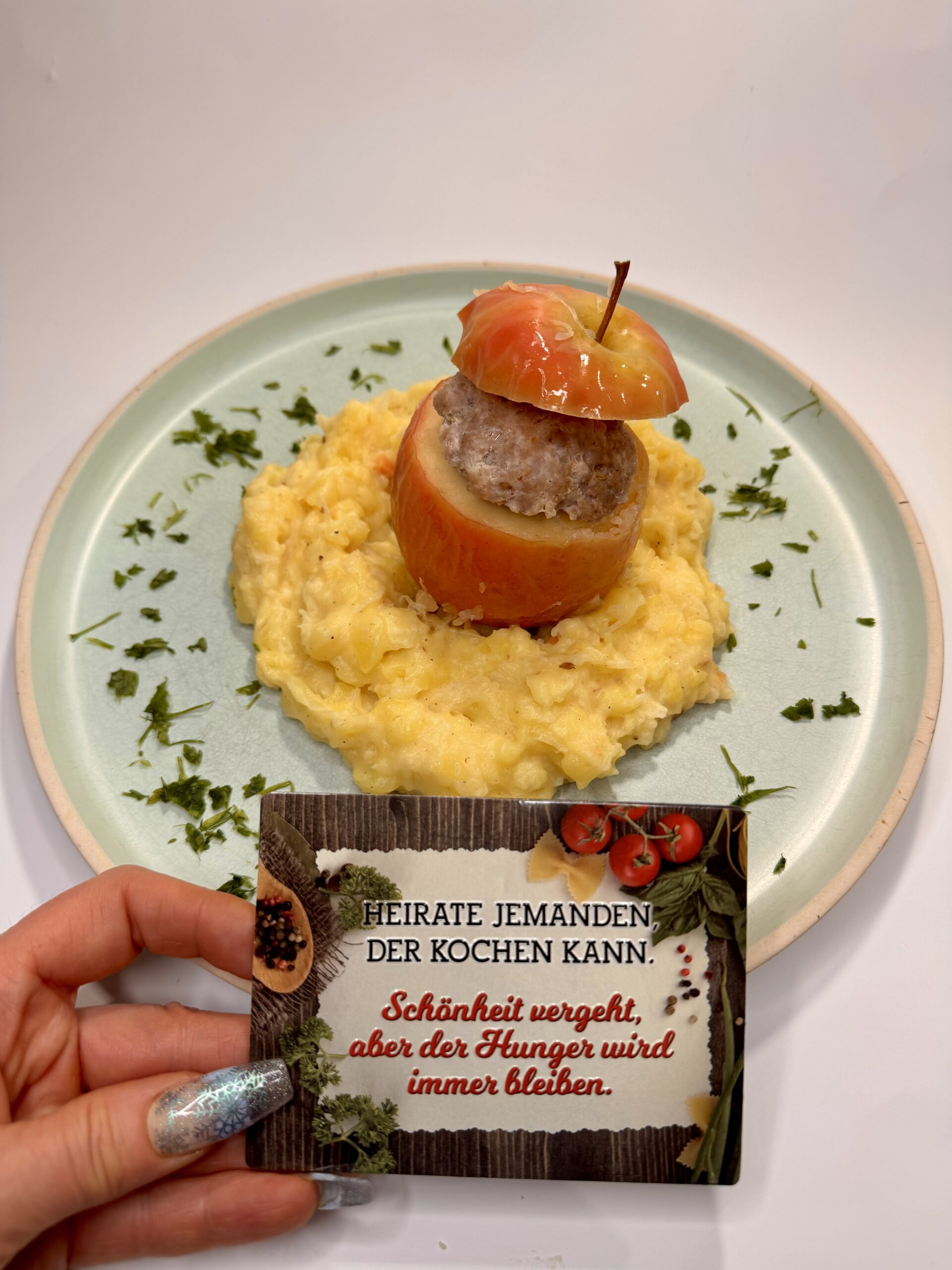 Gefüllte Äpfel mit Hackfleisch und Kartoffel-Sauerkraut-Stampf
