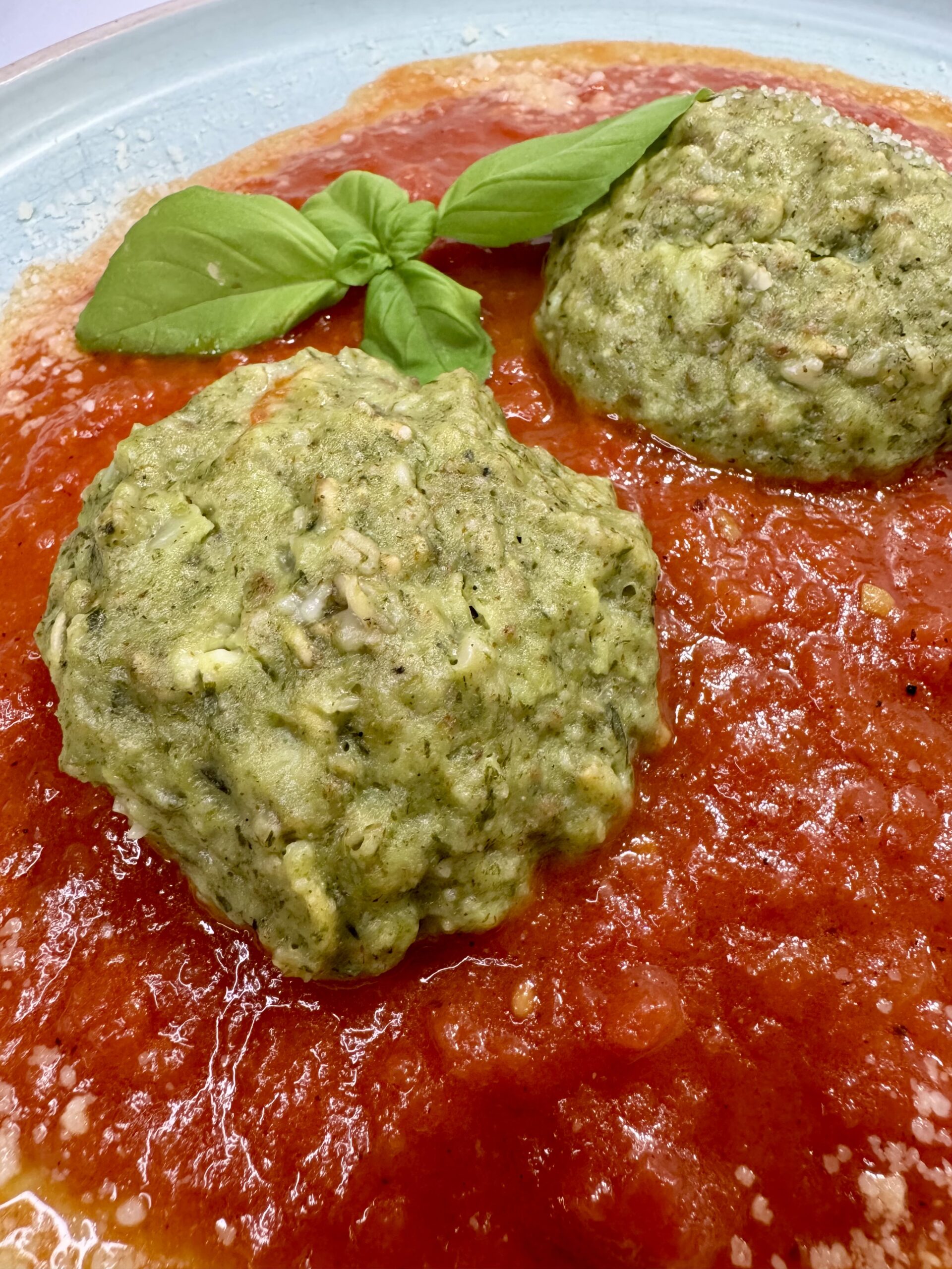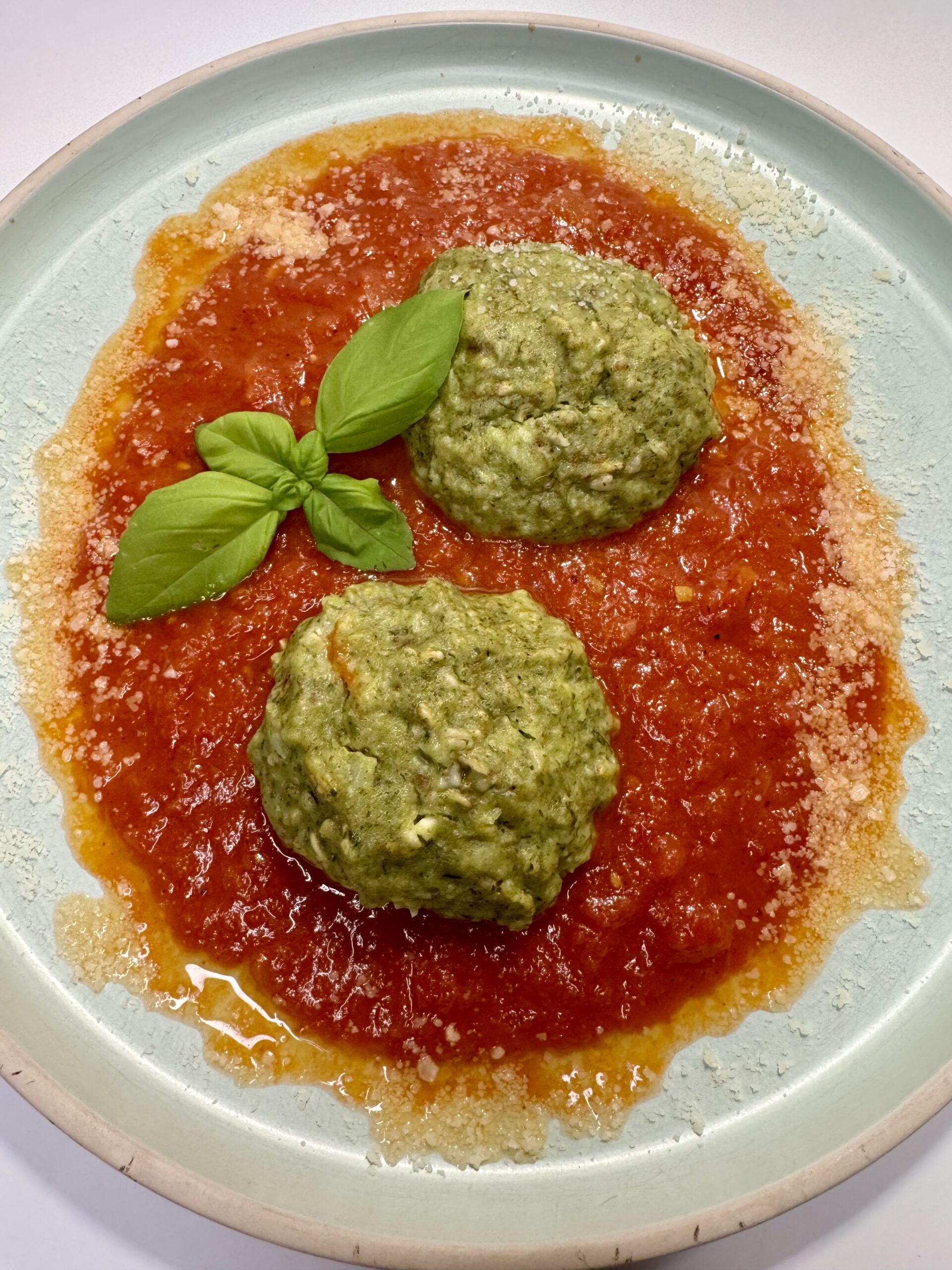 Sollte der Kloßteig noch etwas zu flüssig sein zum formen einfach noch ein paar Haferflocken zugeben. 😉