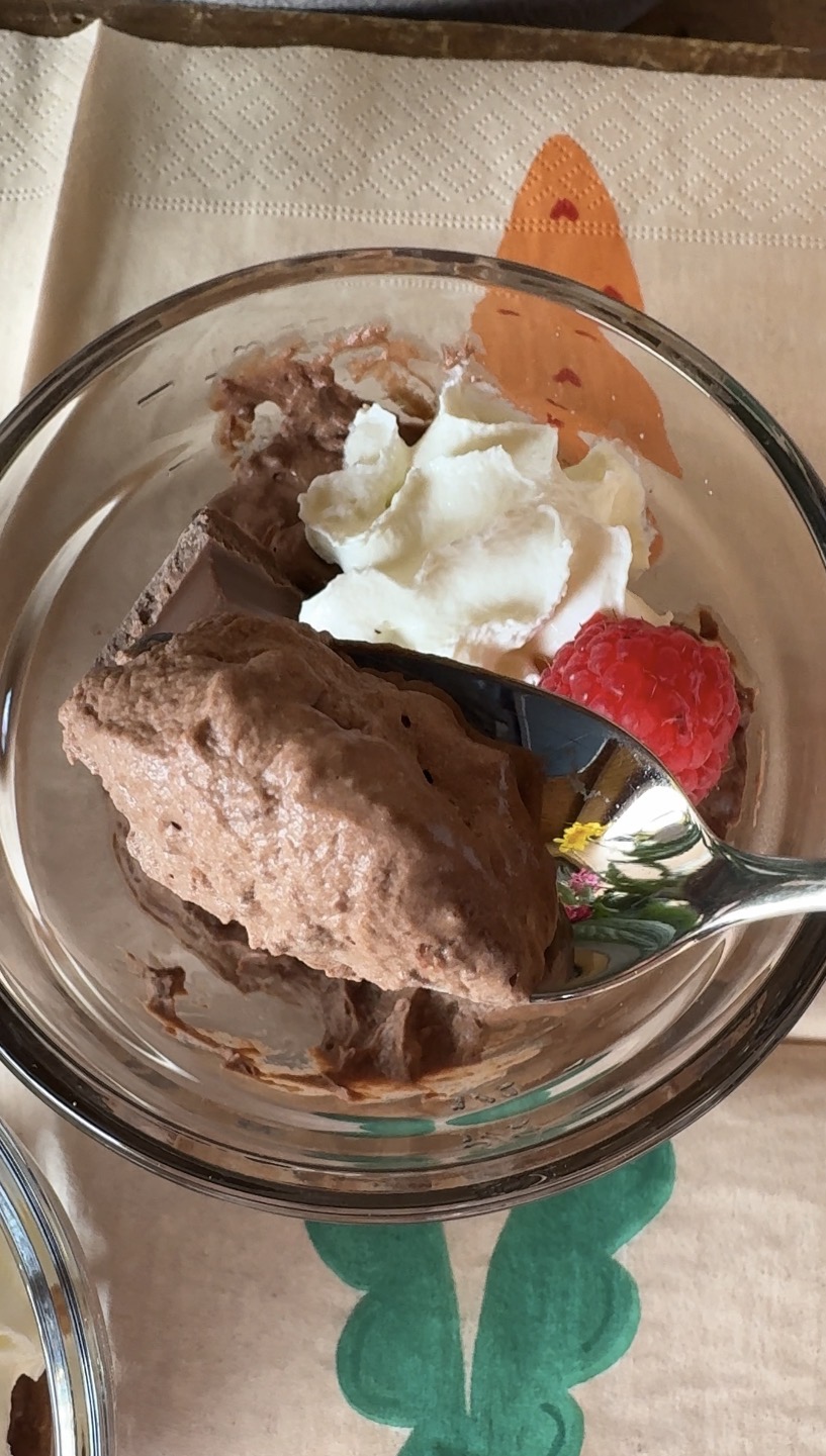 Aber die 10 Min. für dieses super tolle Mousse hat er gar nicht mit bekommen. Dafür hat er sich gerade über ein Käffchen mit Schoki gefreut. Er musste sogar gleich 2 essen. 🤣🤣🤣