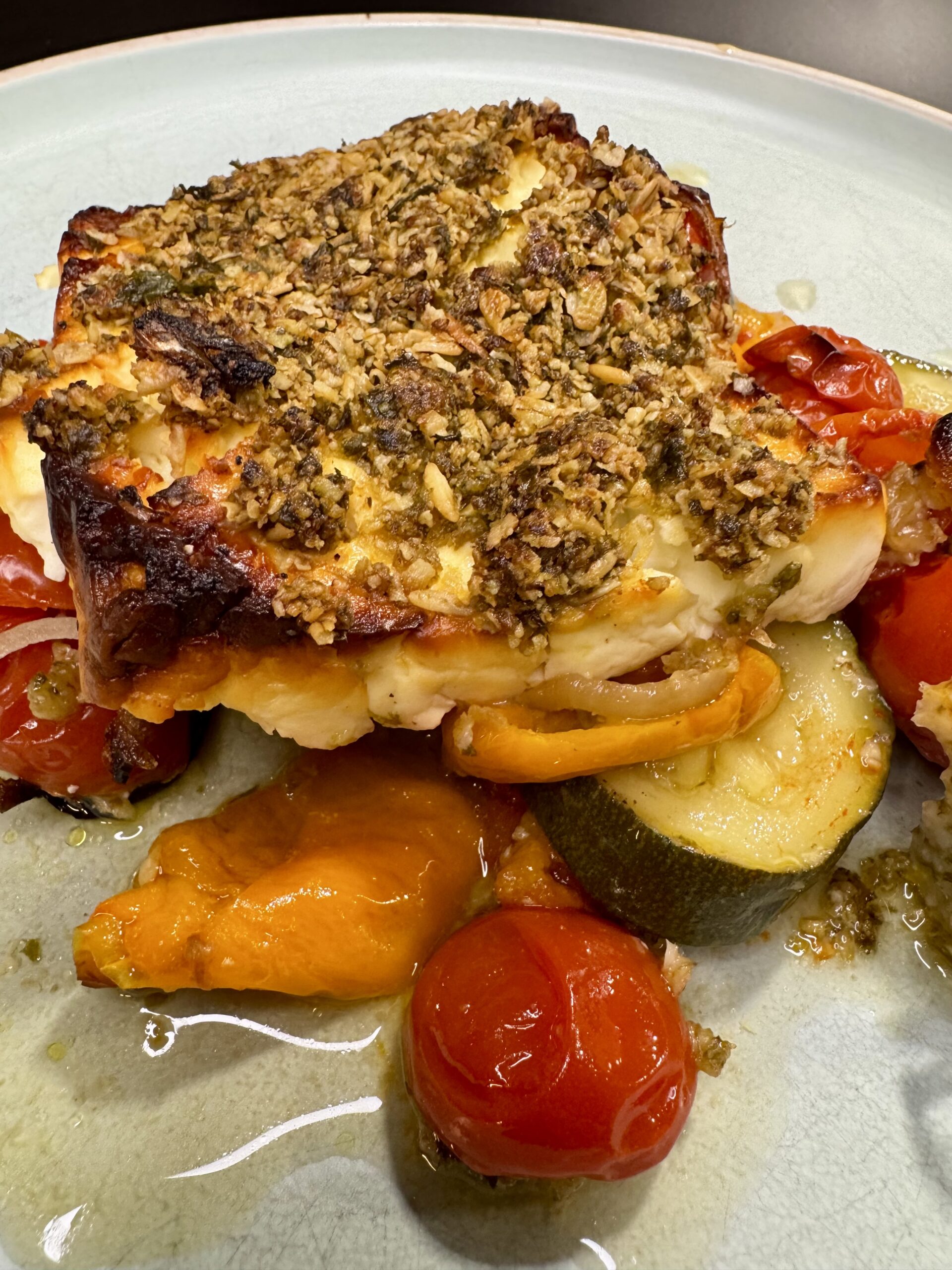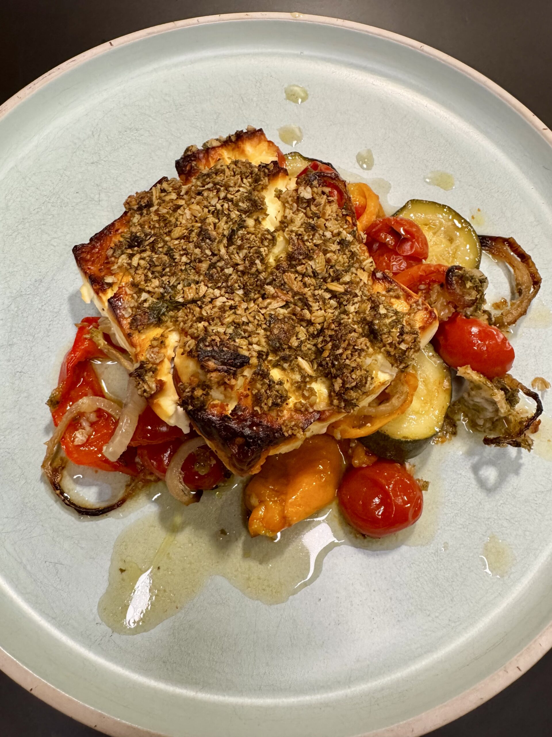 ➡️ nach Belieben würzen, mit Olivenöl beträufeln, Servierzauberer als Deckel drauf legen, 30 Min. im Backofen backen